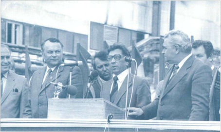 Митинг на Уренгое. В. С. Черномырдин, Н. И. Миронов, Н. И. Курбатов, Е. Н. Алтунин. 1983 г. |