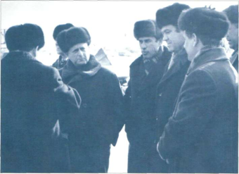 | В. Б. Потапов в беседе с заместителем председателя Совета Министров СССР В. Э. Дымшицем. Тюменская область, 1978 г. |