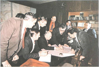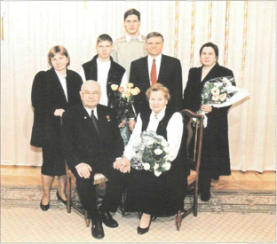 | Геологическая семья. Слева направо: (сидят) Лев Иванович с женой; (стоят) дочь Ольга, внуки Михаил и Иван, зять Сергей Михайлович Данилкин, дочь Наталья |