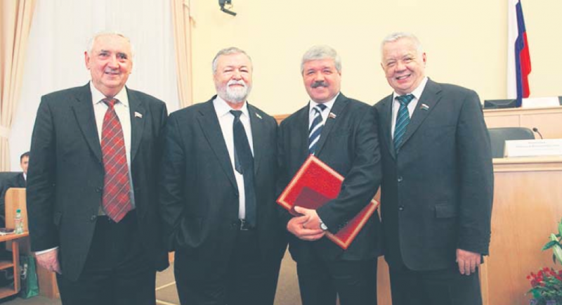 Делегация председателя Совета ЗСЗ Юрия Неёлова (на снимке – второй справа), с 2010 года представляющего интересы ямальцев в Верхней Палате Парламента РФ (с июля 2013 года Юрий Васильевич возглавляет Комитет Совета Федерации по экономической политике), тепло привет- ствовала своих земляков в Тюмени.