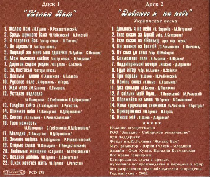 Юрий Гуляев. Дивлюсь я на небо. Украинские песни