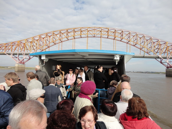 Утром после завтрака, нас ожидала 4-х часовая прогулка на теплоходе к месту слияния двух великих сибирских рек – Иртыша и Оби. Прекрасные виды поймы Иртыша, солнечная погода, «рюмка чая» в компании земляков, подняло настроение всех участников экскурсии и над сибирской рекой зазвучали любимые песни сибиряков – первопроходцев 70-х и 80-х, годов. После обеда в ресторане гостиницы обе делегации автобусами отправились на экскурсию по городу. Для многих ветеранов – земляков, давно не бывавших в Ханты-Мансийске город открывался заново. Прекрасные современные здания оригинальной архитектуры, изумительно оборудованные парки, памятники, фонтаны привели нас в восторг. Да, это столица самого нефтяного края России под красивым названием – «Югра»! В душах и словах ветеранов звучала гордость за дела свои и многих коллег того далёкого времени когда тюменский нефтяной край только начинал осваиваться. И каждый раз, проезжая мимо старых зданий звучало: «А помнишь…».