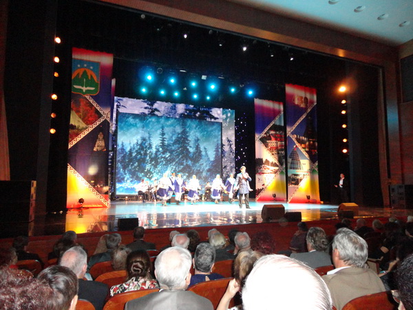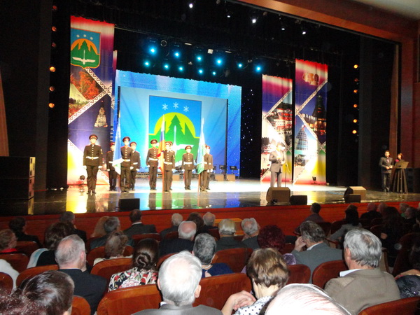 На следующий день наши делегации – москвичей и тюменцев, с удовольствием рассматривали выставку достижений учреждений и предприятий города Ханты-Мансийска в прекрасном выставочном центре «Югра-Экспо». Многие из нас продегустировали продукцию пищевых предприятий города, а некоторые приобрели дары местной природы. В середине дня в культурном центре «Югра Классик» началось торжественное собрание, посвящённое юбилею города.