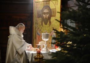 В Рождественский сочельник Святейший Патриарх Кирилл совершил Литургию святителя Василия Великого в Храме Христа Спасителя