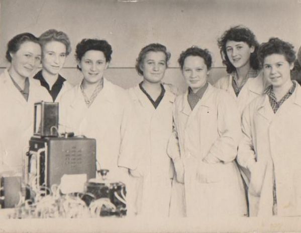 | На электромеханическом заводе у конвейера. Тюмень, 1960г |