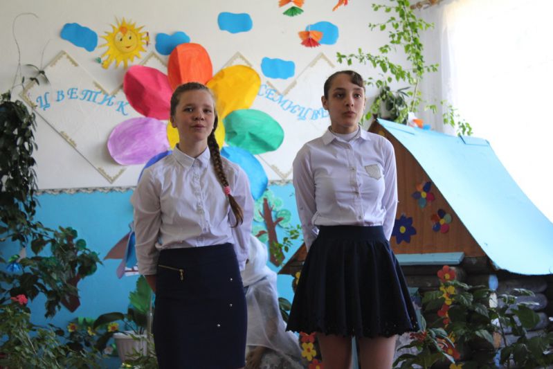 Ведущие сообщили, что 25 февраля 2015 года в рамках проекта  «Согретые Сибирью» была торжественно открыта  установленная на здании Знаменщиковской школы мемориальная доска в честь подвига  тюменцев, сохранивших жизни эвакуированных  в Сибирь детей. В тот день на  митинге с  приветственным словом к его участникам обратилась Л.И. Марикова – заместитель главного редактора выпущенного в 2012 году «Тюменским издательским домом» двухтомника «Согретые Сибирью». (В нём – повествование о том, как во время Великой Отечественной войны Сибирь спасала детей, эвакуированных из разных уголков страны;  отдельная глава второй книги посвящена истории детских домов, работавших в войну в Сорокинском районе). Людмила Ивановна подарила Знаменщиковской школе эти книги, содержащие ценнейший местный материал для патриотического воспитания учащихся.