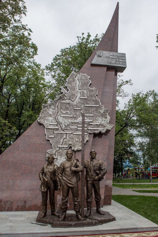Фигура в центре Монумента молодым созидателям земли Тюменской (чье недавнее открытие приурочено к 100-летию комсомола и дню рождения Тюменского комсомола) вполне узнаваема. Это мы – покорители Самотлора 70-х годов.