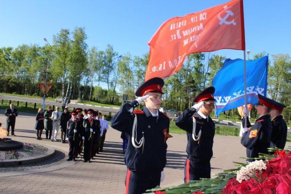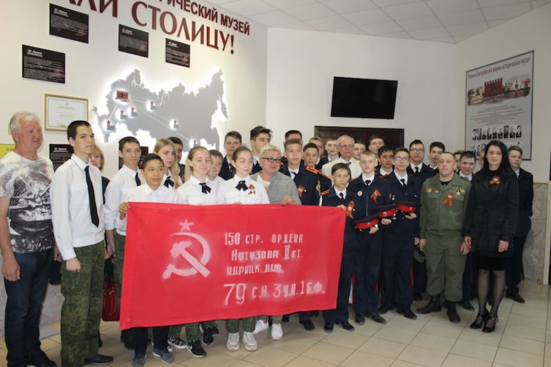 В рамках Ямальской патриотической акции кадеты 3-ей и 4-той школ г.Салехарда совместно с сотрудниками департамента международных и внешнеэкономических связей округа, представительства ЯНАО при Правительстве РФ, Ленино-Снегиревского музея изготовили копию Знамени Победы и в торжественной обстановке передали ее в музей.