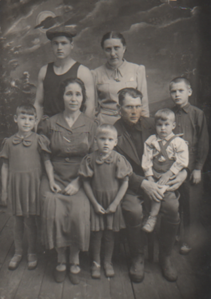 Сразу, в начале войны, папу призвали в армию. Семья состояла из 7 человек: мама, братья Валентин и Юрий, я, сестры Надежда и Татьяна. 7 июля 1941 года в нашей семье родился брат Александр. У каждого было место для сна. В зале (передней комнате) спали: мама – на кровати, две сестрёнки – на кровати, братик – в качке; в прихожей комнате: два брата – на кровати, я – на печи. А летом я часто спал на улице, под навесом, на сене.