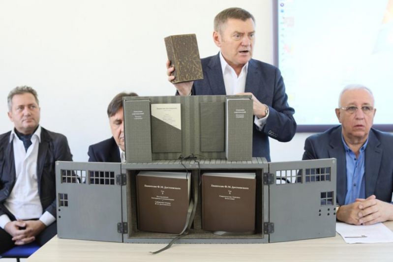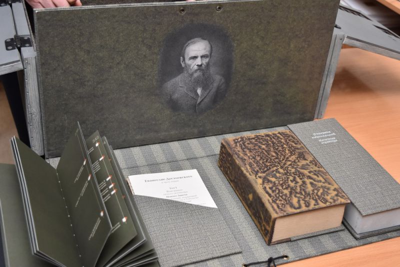Уникальным является внешний вид факсимильного издания: пять томов вложены в футляр в виде каземата с тюремными воротами и маленькими окнами. Главный том –Евангелие Ф.М. Достоевского с комментариями к пометкам писателя. Еще два тома – сборники научных материалов и исследований по творчеству гениального писателя.