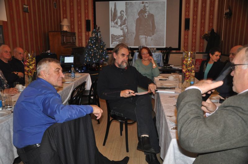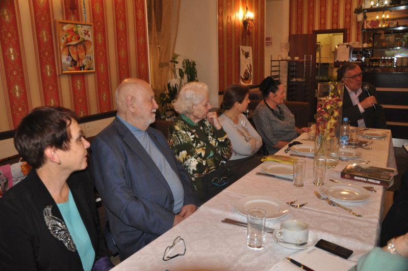 На эту предновогоднюю встречу все пришли с какими-то новинками: Александр Пахомов под музыку декламировал свои исторические поэмы, Аркадий Харюшин поделился стихами из своего нового сборника, Олег Ракутько познакомил с книгой своего старого друга Виктора Георгиева «Перед пришествием». Виктор Георгиев знаменит как режиссёр художественных фильмов «Сильные духом», «Кремлёвские куранты», «Идеальный муж», «У опасной черты» и другим. Николай Рачков презентовал книгу «Легенды розыска», в издании которой принял участие как оформитель. Лидия Уланова принесла тюменские газеты со своими воспоминаниями из комсомольской юности: как молодёжь закладывала в Тюмени первые парки и скверы, работала на субботниках, в том числе и на строительстве ЗАГСа по улице Мельникайте с весёлым лозунгом «Все там будем!». Ровесники Лидии Владимировны заложили аллею в честь 50-летия ВЛКСМ и замуровали письмо к молодым авиаторам 2018 года. Есть там и такие строчки: «Мы твёрдо верим, мы наказываем вам – под руководством партии коммунистов победоносно нести знамя марксизма-ленинизма в борьбе за победу коммунизма на всём земном шаре..» Какие оптимистические и грустные для нашего времени строки, но в них верили 50 лет назад и этим жили!