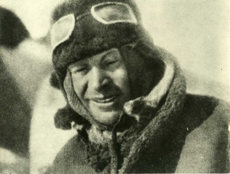 Летчик В. Молоков из авиаотряда Н. Каманина, сделавший в ледовый лагерь 9 рейсов и вывезший 39 человек на двухместном самолете «П-5».