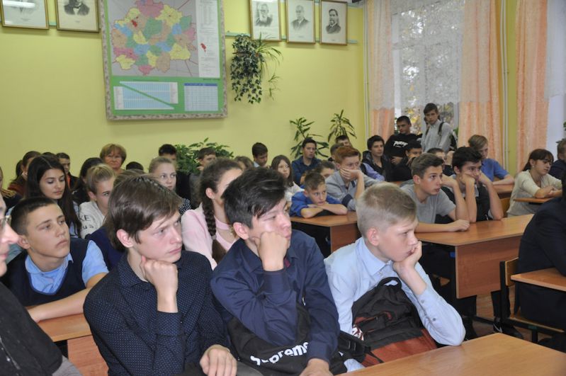 Наконец, после окончания плановых занятий старшеклассников около 40 человек собрали в наиболее вместительном классе. Понемногу ребята угомонились и разместились по несколько человек за партами. Валентина Ивановна в очередной раз представила меня. Многих ребят я узнал, так как с жителями села Павелец и окружающих поселений мне постоянно приходится встречаться в повседневной жизни, а поскольку я часто участвую в местных праздниках и юбилейных торжествах, где приходится много фотографировать, то и ребят многих запомнил, в том числе, через объектив камеры. Так же, как и учителей. Многих знаю по ранее проведенным встречам. Очень тепло встретились с О.А. Юнусовой – помощником директора школы по безопасности, ранее она была заместителем по воспитанию, и первые встречи в школе организовывала именно она.