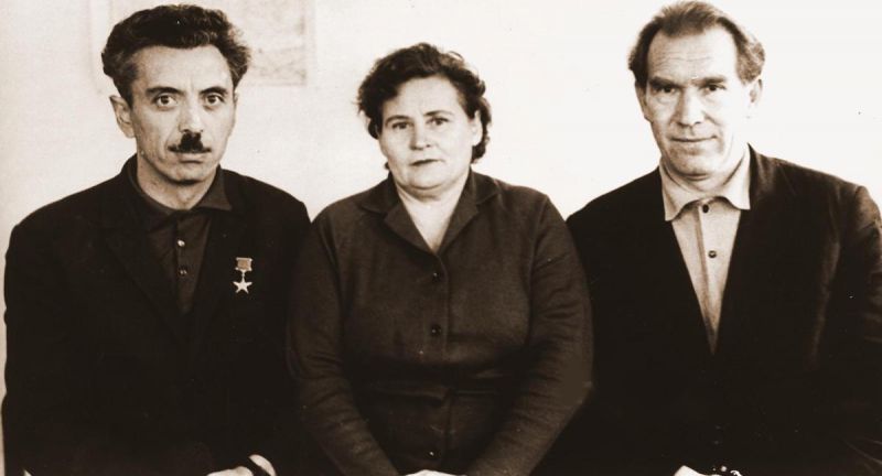 Ф.К. Салманов и В.В. Бахилов с председателем Сургутского райисполкома А.Г. Григорьевой. 1960-е гг. Фото Анатолия Мясникова