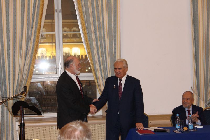 | Генадий Иосифович Шмаль был награжден медалью Петра I.Награду вручил член-корреспондент РАЕН, член Экспертного Совета при комитете Госдумы по энергетике Леонид Иванович Твердохлебов. |