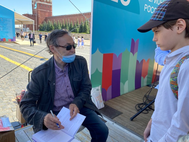 Автограф-сессия и презентация книг Еремея Айпина проходили в павильоне «Регионы России» на фоне Спасской башни.