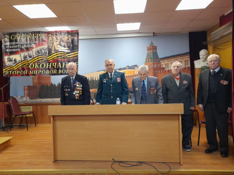 Торжественное мероприятие, на которое были приглашены 100 ветеранов, открыл первый заместитель председателя Московского комитета ветеранов войны (МКВВ) Виктор Анатольевич Закидкин. Он отметил, что второго сентября 1945 года подписанием акта о безоговорочной капитуляции милитаристской Японии была поставлена последняя точка в разрушительной кровопролитной войне, которая началась 1-го сентября 1939 года нападением фашистской Германии на Польшу и закончилась в сентябре 1945-го года на Дальневосточном театре военных действий не продолжительной, но не менее жесткой и разрушительной войной с Японией.