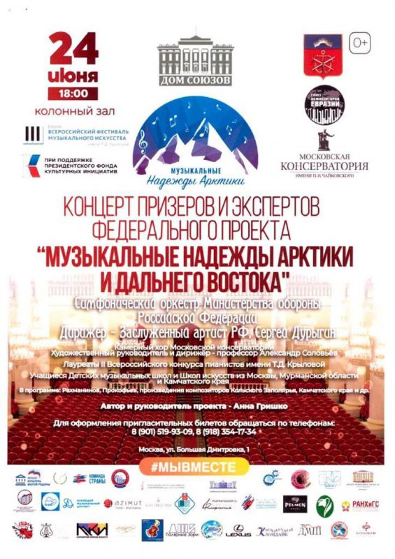 Департамент национальной политики и межрегиональных связей Москвы информирует о том, что 24 июня 2023 года в Колонном зале Дома Союзов состоится концерт «Музыкальные надежды Арктики и Дальнего Востока».