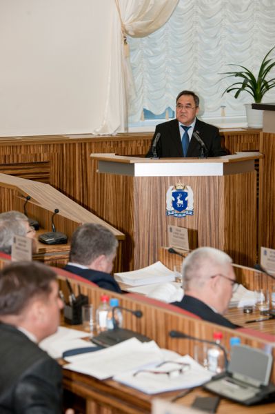 В своем выступлении А.Ермаков отметил, что за два десятилетия ямальский парламент проделал большую работу по формированию правовой базы субъекта, обеспечивающей как социально-экономическое и культурное развитие, так и условия для благоприятного делового и инвестиционного климата, повышения качества жизни людей.