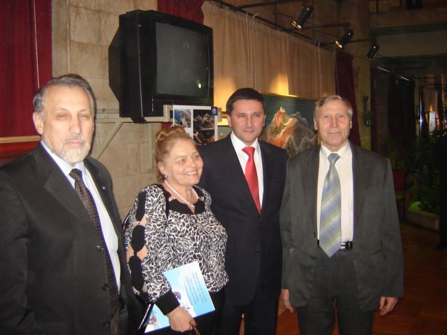 Справа налево: Анатолий Анисимов, Губернатор Ямало-Ненецкого автономного округа Дмитрий Кобылкин, Елена Анисимова. Дом кино Москвы, 2010г.