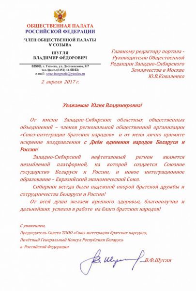 Сибиряки всегда были надежной опорой братской дружбы и сотрудничества Беларуси и России!
