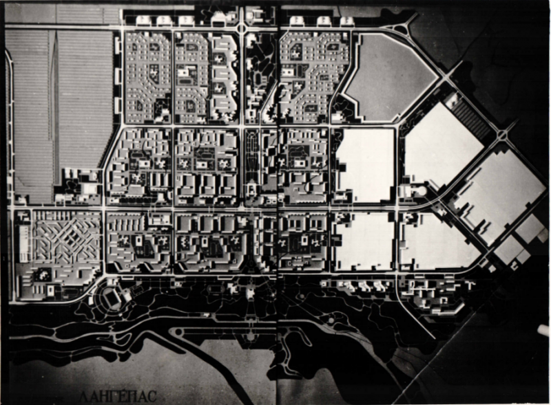 Макет генерального плана застройки города. Белые квадраты справа - микрорайоны перспективного строительства |
