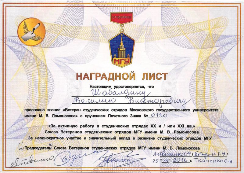 Василию Шабалдину – ветерану студенческих отрядов XX и XI веков