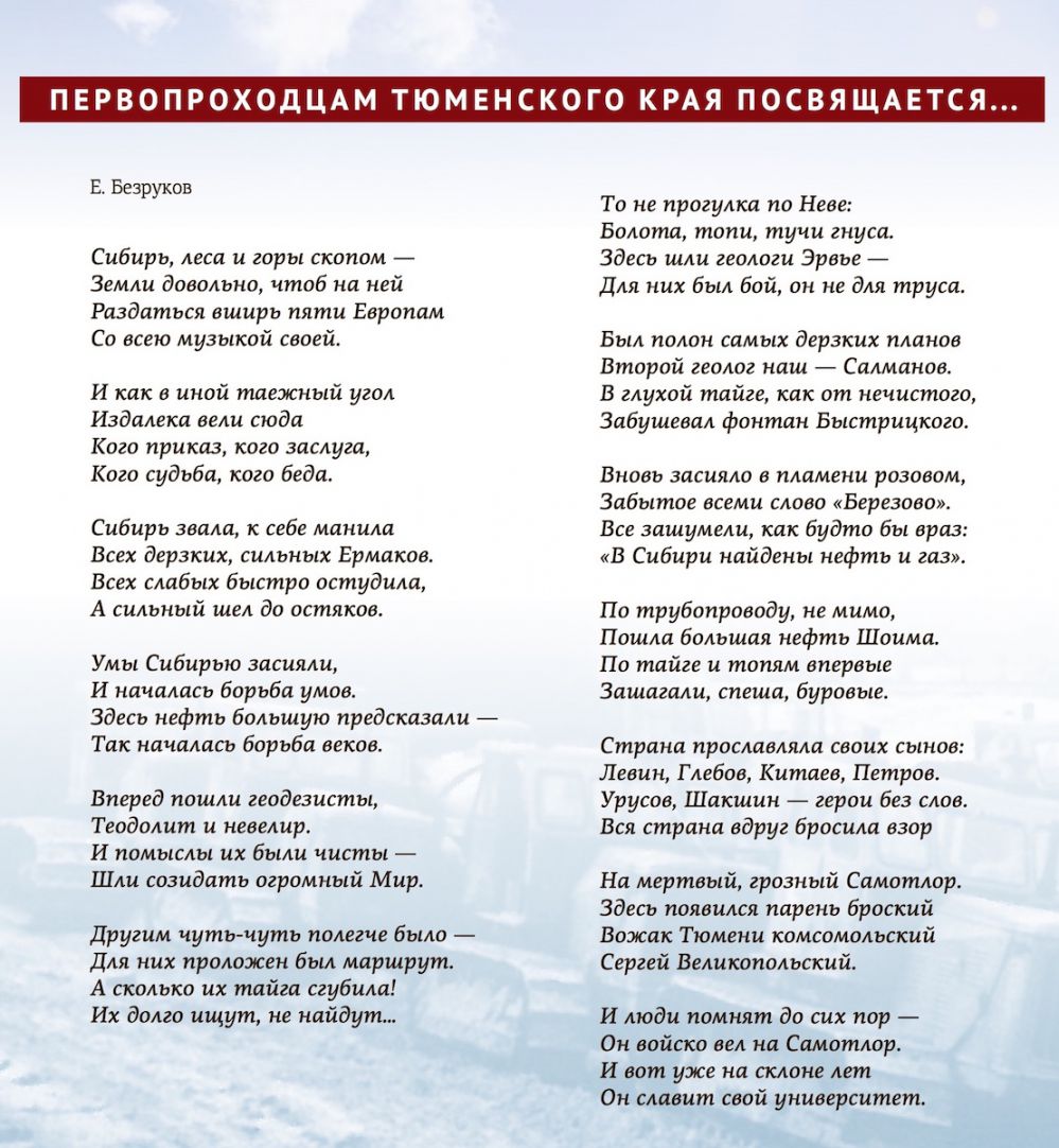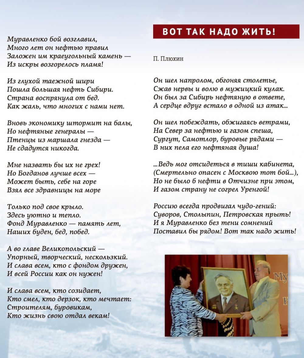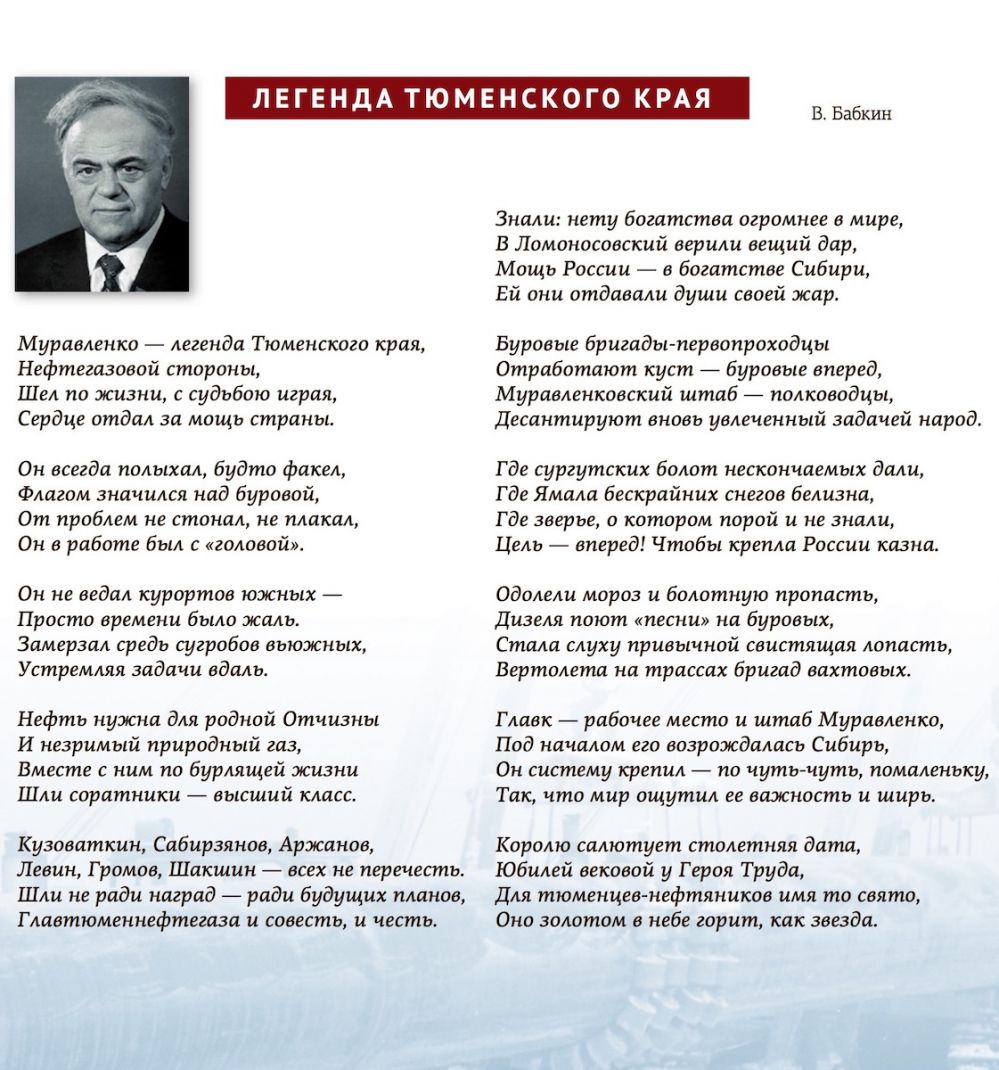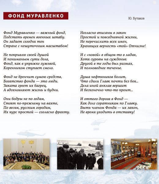 Серию публикаций, посвященных двум датам, продолжаем знакомством с гимном Фонда и стихами памяти легендарному начальнику Главтюменнефтегаза и его соратникам.