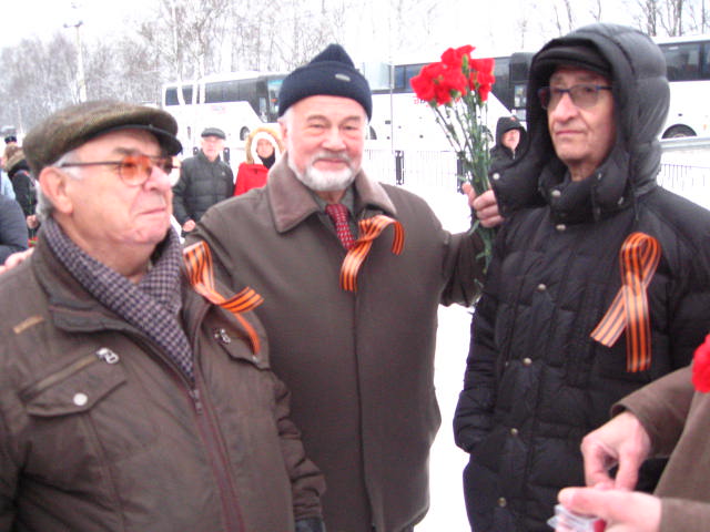 Ветеран Великой Отечественной войны, участник обороны Москвы С.В.Карнаухов рассказал, что разгром немцев под Москвой стал «вестью, мгновенно распространившейся по нашей великой стране». «Люди поняли, что враг может быть разбит, и тогда темп и сила контрнаступления возросли многократно», – отметил он в своем выступлении, обращаясь к участникам патриотической акции.