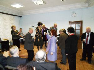 Любо-дорого было смотреть, как на их кителях поблескивали боевые награды. Это придало празднику торжественную яркость. Один за другим выходили к микрофону "мальчишки с поседевшими висками", как назвал их Юрий Торхов, и читали прекрасные стихи, большей частью свои, пели вместе с нами любимые народом песни. Поэтов у нас оказалось гораздо больше, чем мы знали. И теперь мы грезим созданием поэтического клуба. Особое слово – о творчестве Игоря Симановского, поэта, барда, композитора, заслуженного ветерана Западно - Сибирской эпопеи. Весь вечер от играл на гитаре и исполнял свои песни. А ведь ему скоро стукнет 80! Однако душа творит и открывает новые грани смысла жизни. От этого талантливого оптимизма вечер звучал и переливался всеми красками любви.