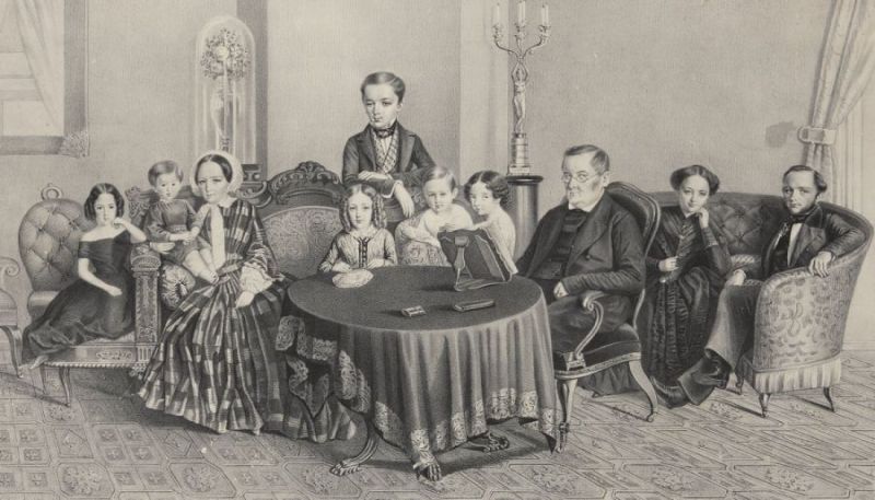 | Неизвестный художник. Семейный портрет в интерьере. 1840-е. Литография. |