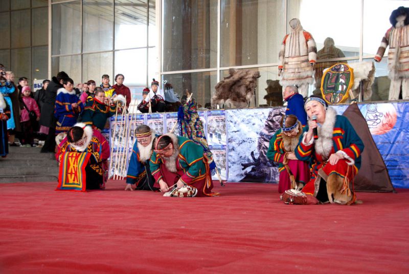 Павильон 69 Выставки достижений народного хозяйства в Москве стал своеобразной Меккой для 40 национальностей нашей страны. Идея проведения выставки народов Севера зародилась в Ассоциации коренных малочисленных народов (президент – депутат Государственной Думы РФ от Ямала Григорий Ледков), и сегодня можно смело утверждать, стала славной традицией, явлением в столичной выставочной жизни. Ежегодно в течение последних десяти лет северяне радушно приглашают к себе в гости тысячи российских и зарубежных гостей. Причем, не только посмотреть на хлебосольные стенды, но в самые настоящие чумы, которые они разбивают у входа на выставку. На открытой площадке традиционно расположилась самая популярная экспозиция «Национальное жилище»: 7 северных чумов ненцев, хантов, эвенков, долган. Здесь можно и убранство чума посмотреть, и нафотографироваться всласть, погладить настоящего северного оленя, «хлебнуть полной ложкой» северного бытового колорита, и пусть на короткое время, но почувствовать себя северянином.