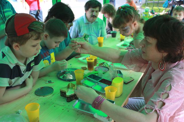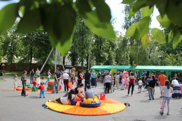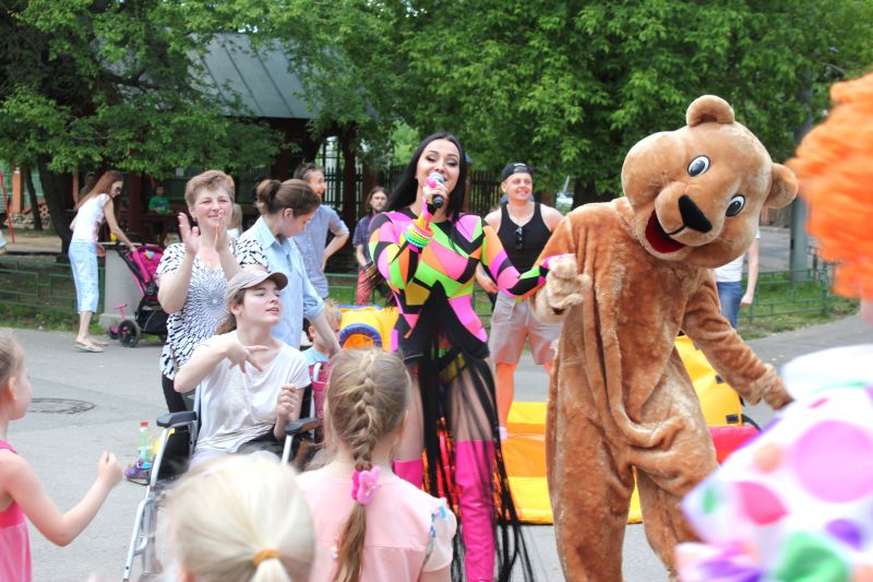 «….теперь улыбнулись в одну сторону и в другую!", - в поселке художников, который расположен в районе Сокол города Москвы, идет оживленная игра. Звучит музыка. Местные ребятишки вместе с клоунами танцуют, поют песни и водят хороводы.