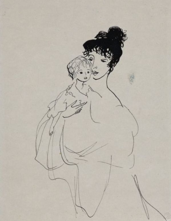 Иллюстратор обязан многое уметь: кроме искусного рисунка, выражать характер через взгляд, жест, движение тела. И знать: и само произведение, и эпоху, в которую оно писалось. Без этого не передать живо и убедительно атмосферу времени. И вообще надо удерживать в памяти уйму вещей. К примеру, на каком стуле сидели Вы, играя с дочкой Машкой? Оказывается, на клисмосе! Он был в Ваше время в большой моде, как и всё древнегреческое в ту, романтическую, пору, пришедшую на смену стилю ампир или попросту – имперскому. Катенька Бакунина, Ваша лицейская муза и ученица Александра Брюллова, следовала тоже привычкам большого света. Поэтому на моём рисунке она – в летящей тунике и чем-то похожа на Вас. Быть может, совпадением чувств?