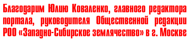 От души благодарю «Наш Проспект Вернадского» за внимание и теплые слова. Считаю их по праву адресованными всем членам нашей дружной и профессиональной команды - Общественной редакции, которая ежедневно трудится над созданием портала Западно – Сибирского землячества.