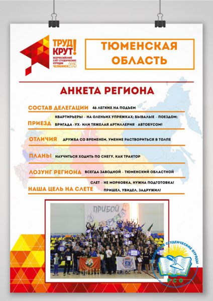 В Челябинске прошел Всероссийский слет студенческих отрядов, посвященный окончанию 56-го трудового семестра. Более 2000 бойцов - представителей 72-х регионов страны приехали на это мероприятие, подводящее итоги года. Тюменская делегация была самой многочисленной - 70 человек (не считая хозяев слета – челябинцев). Она включала проводников, строителей, вожатых, а также ветеранов ССО.