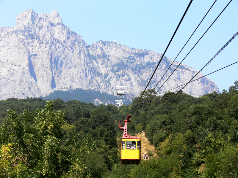Ай-Петри – одна из самых красивых вершин Крымских гор высотой 1234 метра. Название имеет греческое происхождение и переводится как «Святой Петр». С Южного Берега Крыма проведена канатная дорога Мисхор-Сосновый Бор-Ай-Петри с самым длинным безопорным пролетом в Европе, протяженностью 1860 метров. На плато расположен небольшой поселок Охотничье.