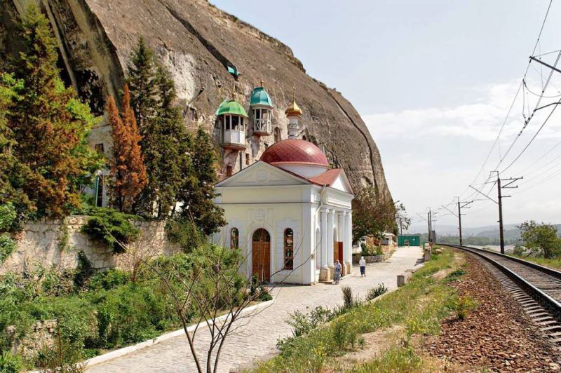 Монастырь зажат между скалами и железной дорогой, которая проходит прямо под стенами обители. Если ехать на поезде в Севастополь, в окне вдруг неожиданно проплывают зеленые монастырские балкончики, прикрепившиеся прямо к скале. Главная святыня пещерного храма – часть мощей священномученика Климента.