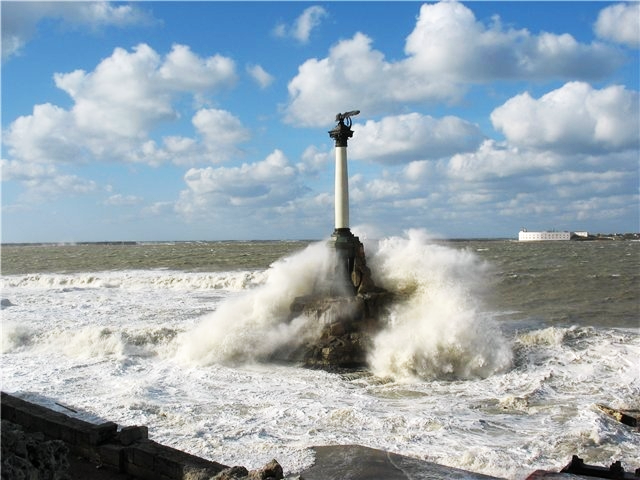 Памятник затопленным кораблям. Монумент сооружен в 1905 году к 50-летию Первой обороны Севастополя, во время которой были затоплены русские парусные корабли, «чтобы заградить вход неприятельским судам на рейд и тем самым спасти Севастополь» (адмирал П.С.Нахимов).