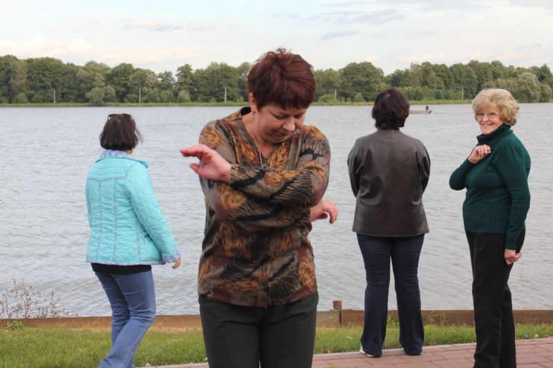 Но как всегда – душа требует простора, а ноги рвутся в пляс. Переместившись из помещения на набережную водоёма, песенный репертуар уступил место зажигательным пляскам. Под разливы мелодий баяна каждый желающий показал всё, что мог.