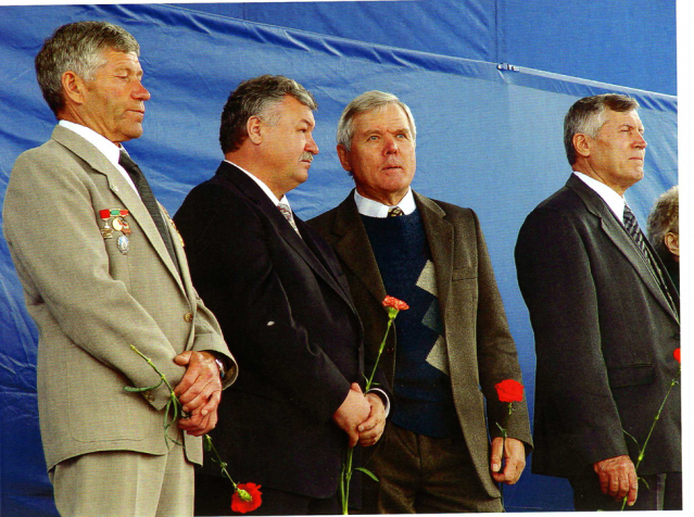 Слева направо: первый секретарь Надымского горкома КПСС Евгений Фёдорович Козлов,  первый секретарь Пуровского райкома КПСС Анатолий Максимович Анисимов, Председатель окрисполкома ЯНАО Константин Иванович Миронов, управляющий трестом Юрий Александрович Струбцов, главный инженер Надымского газопромыслового управления Иван Спиридонович Никоненко…